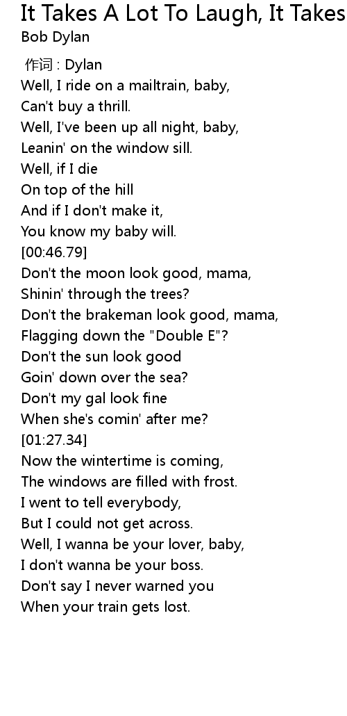 | Song | It Takes A Lot To Laugh, It Takes A Train To Cry |