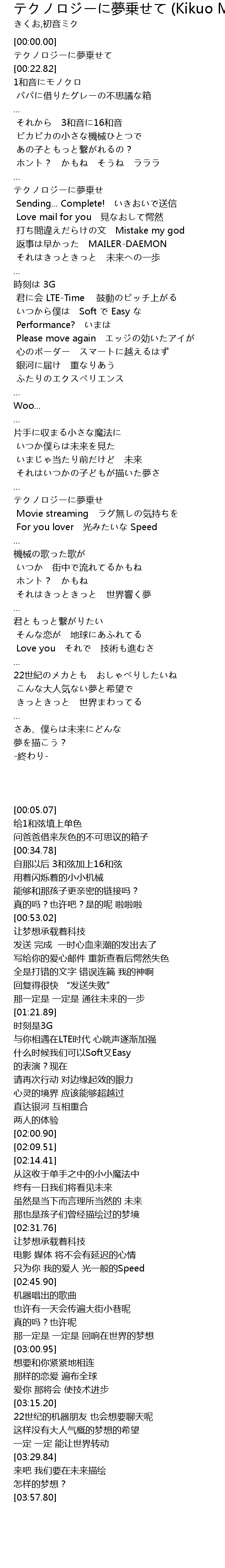 | [00:05.07] | テクノロジーに夢乗せて |