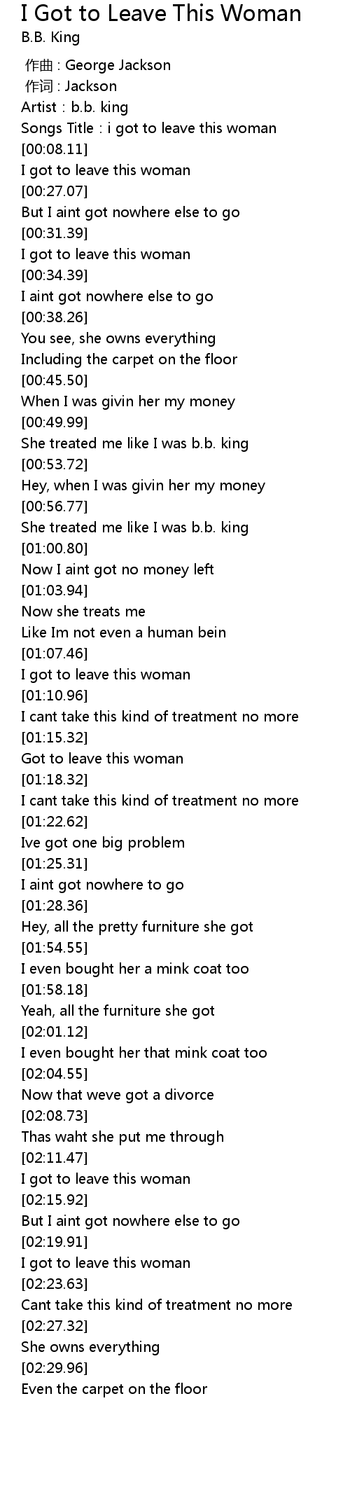 | [00:04.30] | Songs Title:i got to leave this woman |