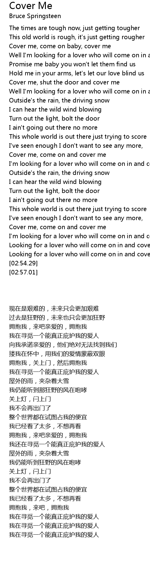 | [00:42.70] | Cover me, shut the door and cover me |