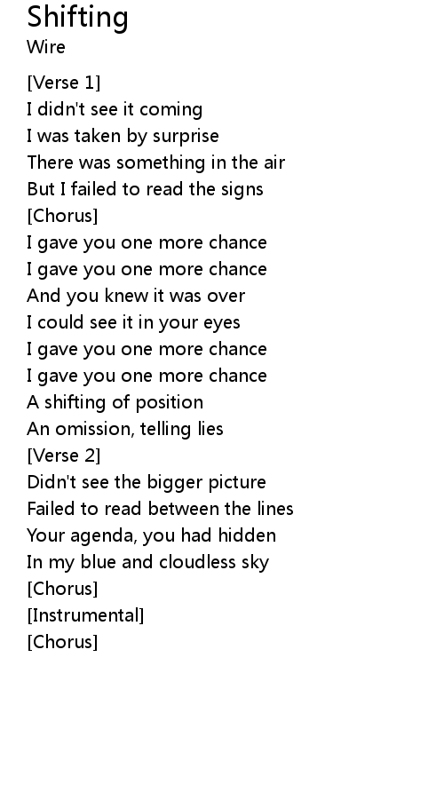 | I gave you one more chance | |
