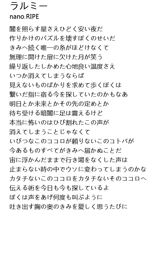 | 宙に浮かんだままで行き場をなくした声は | |