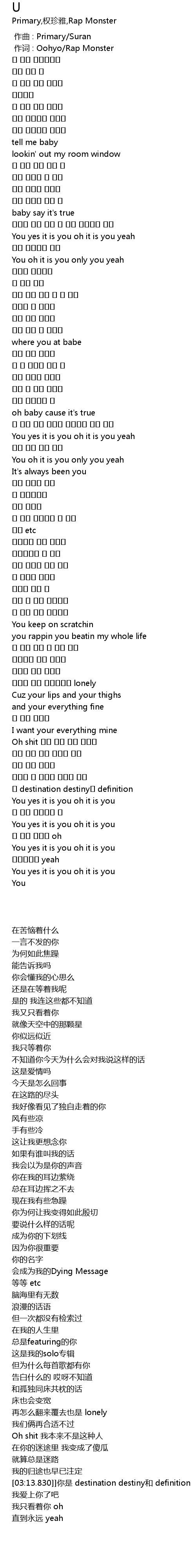 | [00:01.00] | 作词 : Oohyo/Rap Monster |