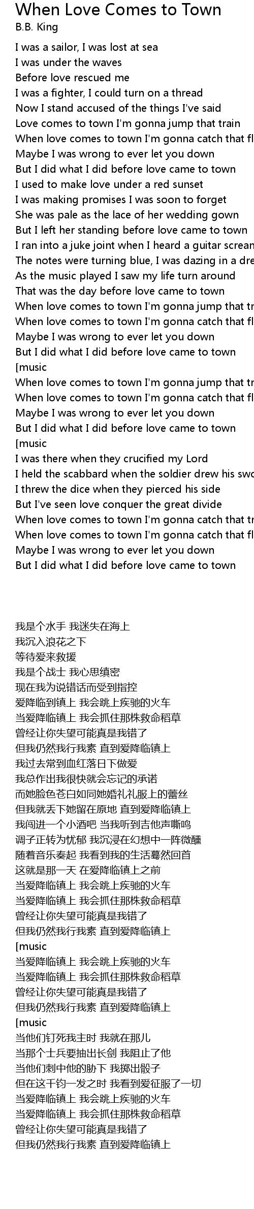 When love comes to town I'm gonna jump that train |