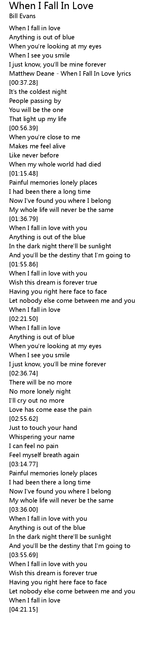 Matthew Deane - When I Fall In Love lyrics |