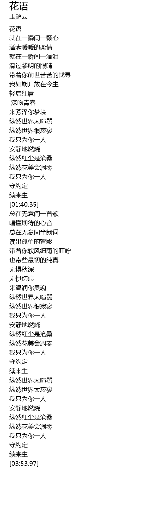| [01:31.35] | wǒ zhǐ wèi nǐ yī rén |