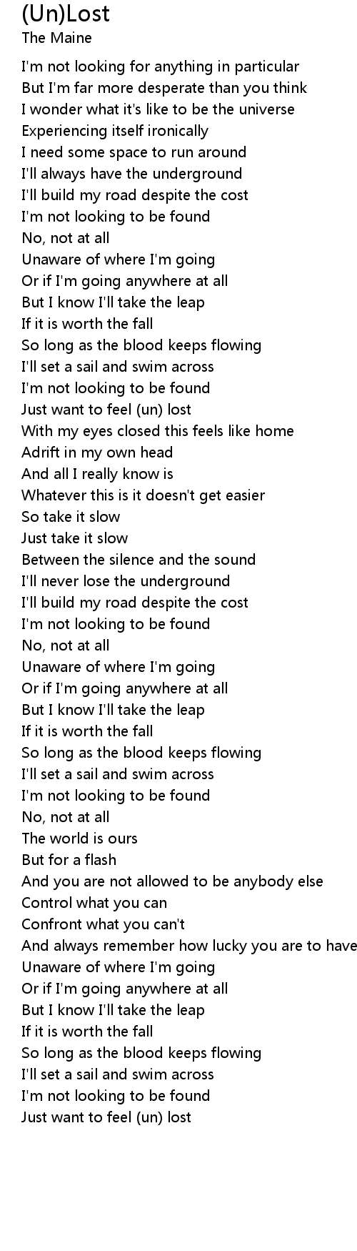 Just want to feel (un) lost |