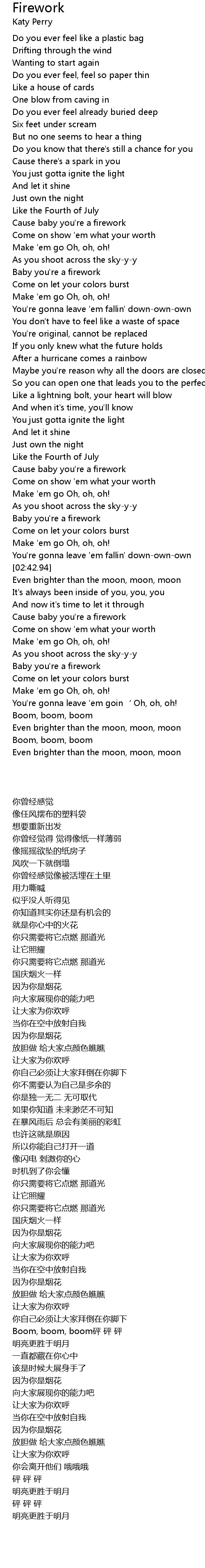 | [02:57.41] | Cause baby you' re a firework |