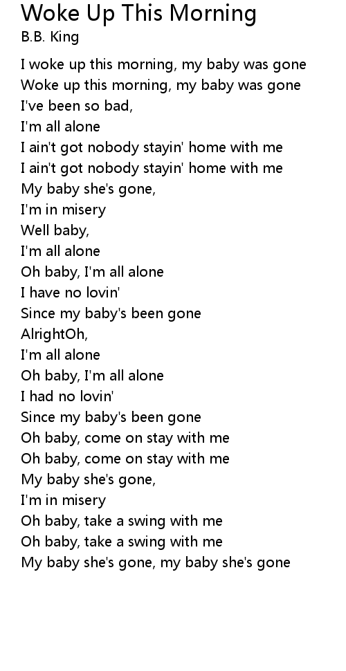 Woke up this morning, my baby was gone |