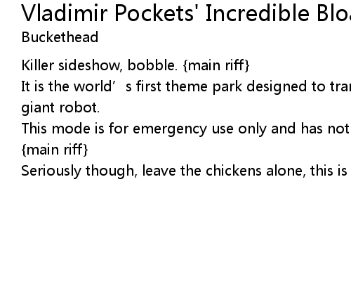 | Song | Vladimir Pockets' Incredible Bloated Slunk Show |