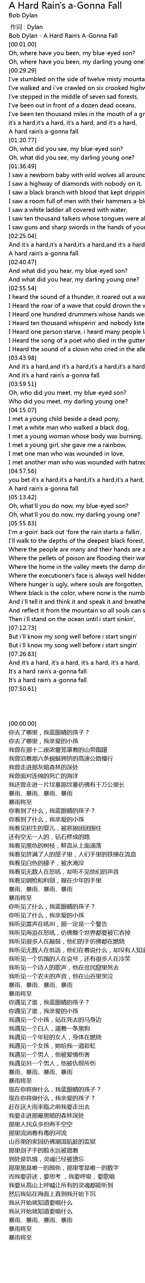 | [00:00.00] | Bob Dylan A Hard Rain' s AGonna Fall |