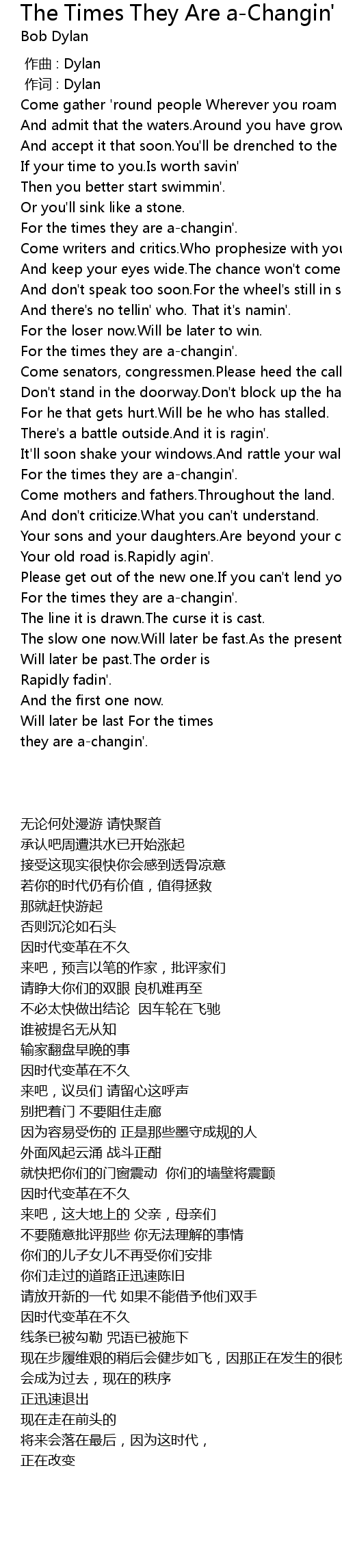 | [00:40.32] | Come writers and critics. Who prophesize with your pen. |