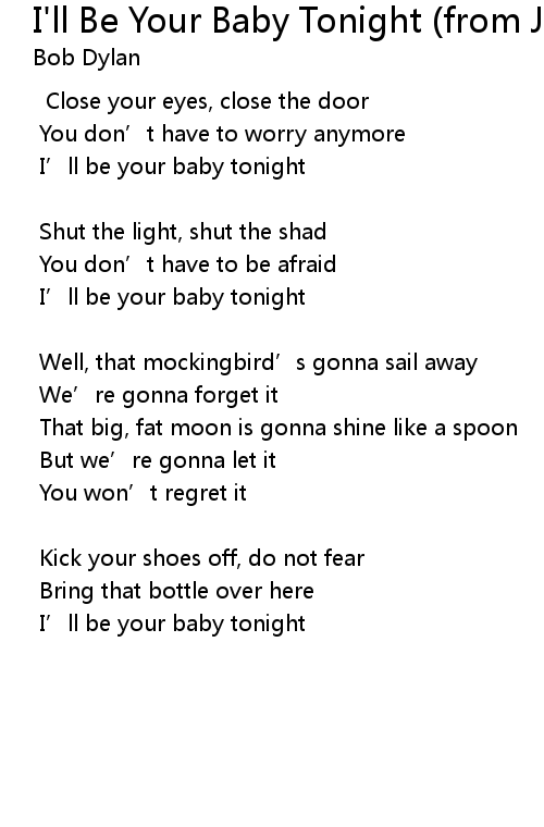 | Song | I'll Be Your Baby Tonight (from John Wesley Harding) |