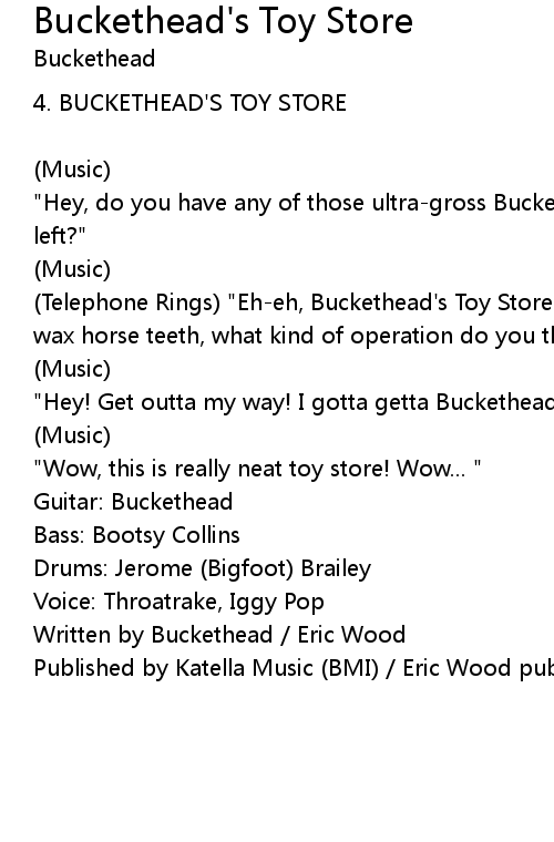 (Telephone Rings) "Eh-eh, Buckethead's Toy Store... Oh, dude! Of course we have wax horse teeth, what kind of operation do you think we're running here?!" |
