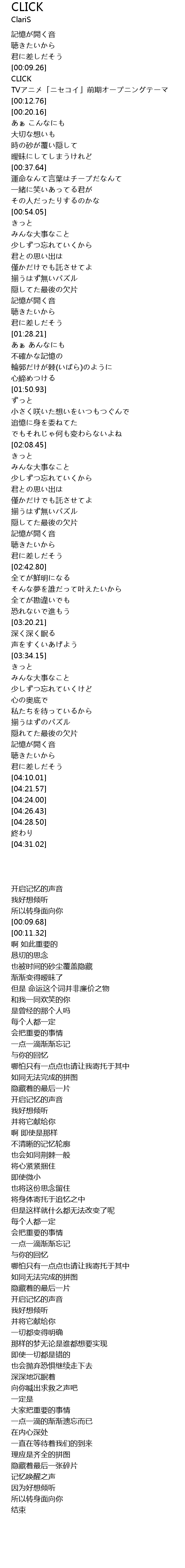 [00:11.32] TVアニメ「ニセコイ」前期オープニングテーマ