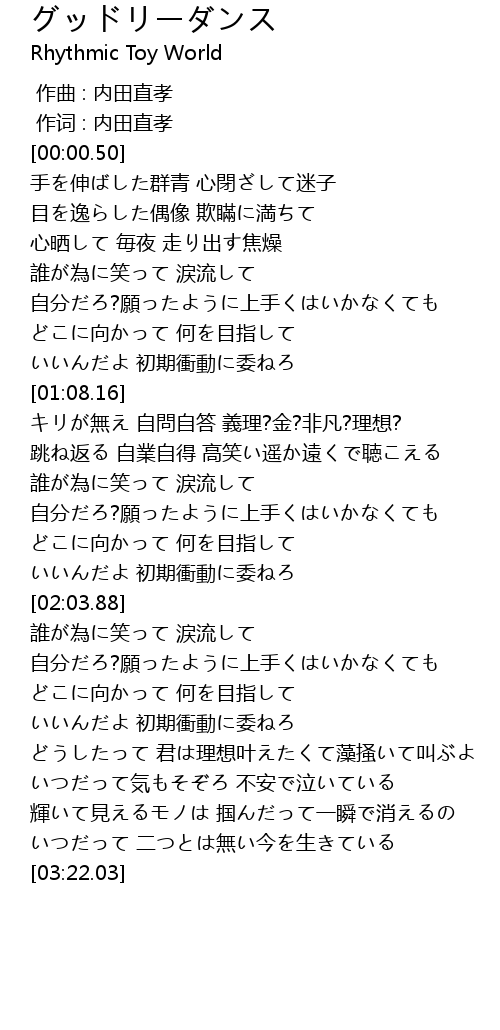 | [01:57.47] | いいんだよ 初期衝動に委ねろ |