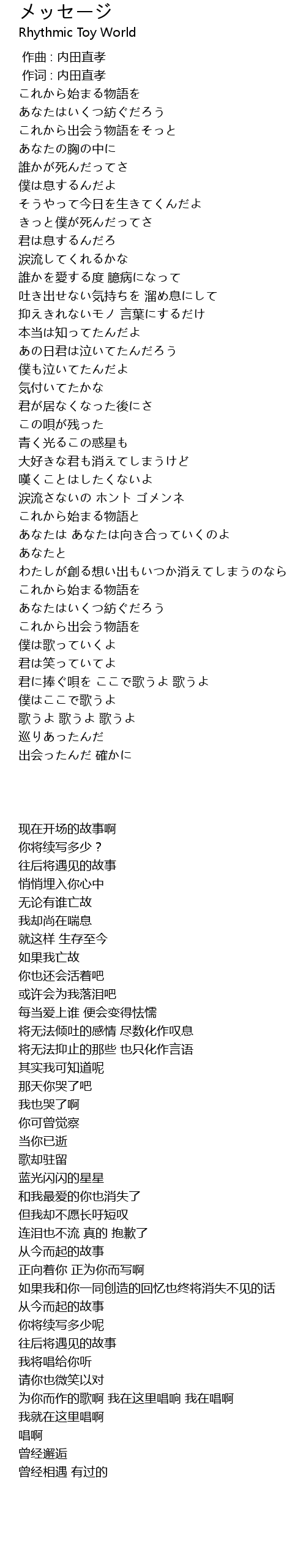 | [04:22.82] | 君に捧ぐ唄を ここで歌うよ 歌うよ |