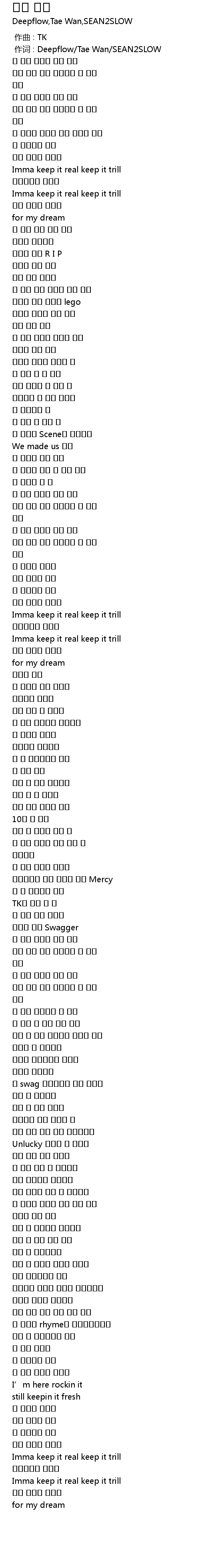 | [00:01.00] | 作词 : Deepflow/Tae Wan/SEAN2SLOW |