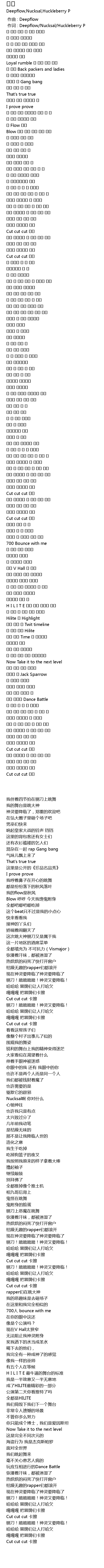 | [00:01.00] | 作词 : Deepflow/Nucksal/Huckleberry P |