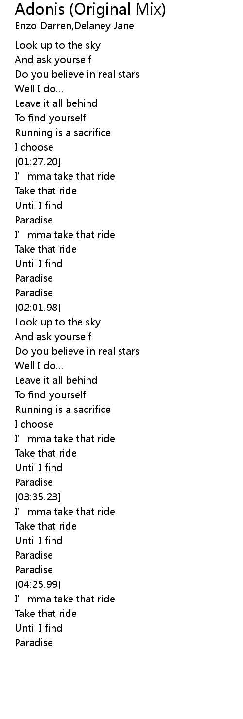 | [01:40.75] | Paradise |