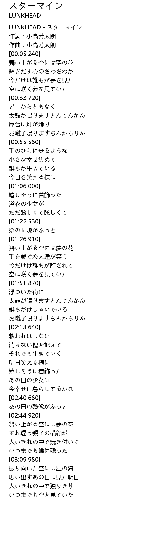 | [00:00.130] | LUNKHEAD - スターマイン |