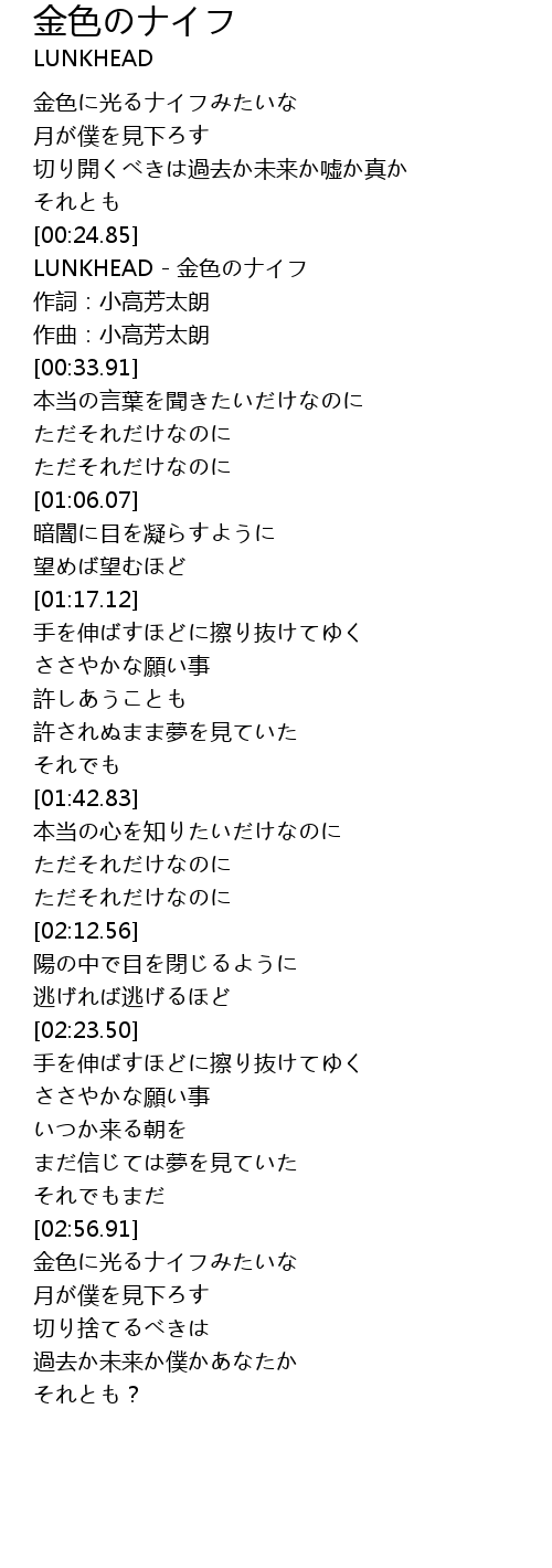 | [00:27.29] | LUNKHEAD - 金色のナイフ |