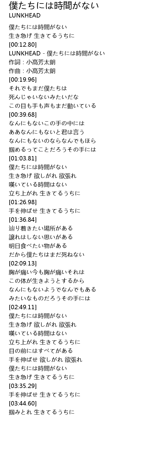 | [00:14.94] | LUNKHEAD - 僕たちには時間がない |