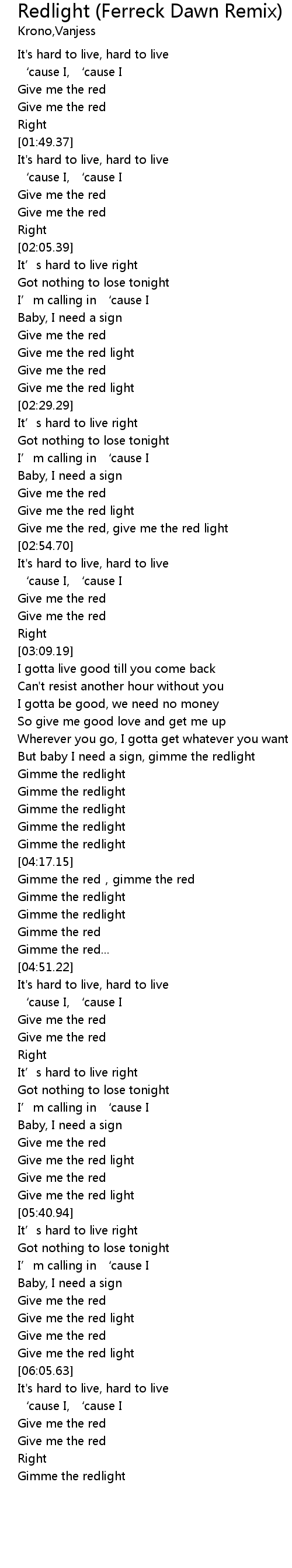 | [03:55.29] | But baby I need a sign, gimme the redlight |