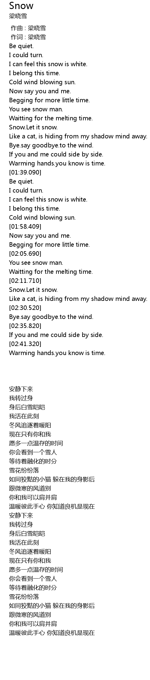 | [00:01.00] | zuò cí : liáng xiǎo xuě |