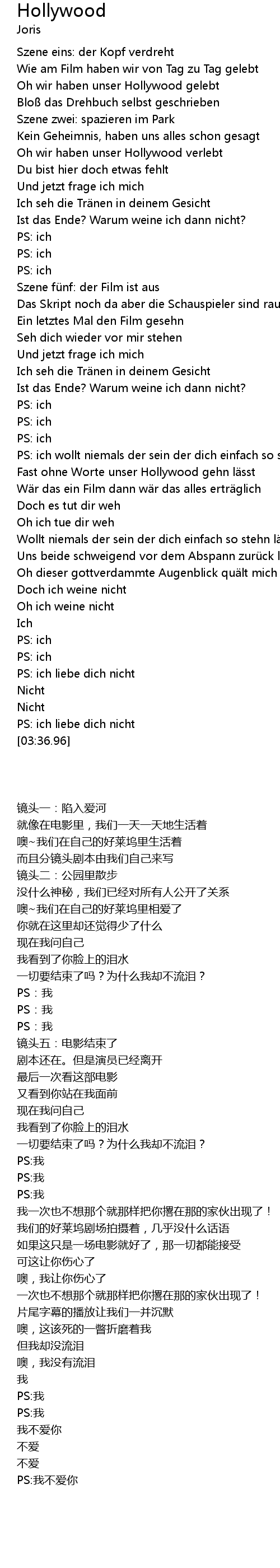 | [02:22.09] | Fast ohne Worte unser Hollywood gehn lässt |