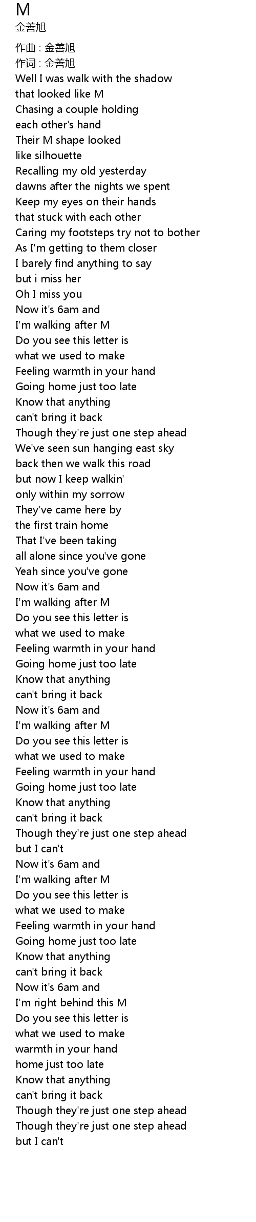 | I'm walking after M | |
