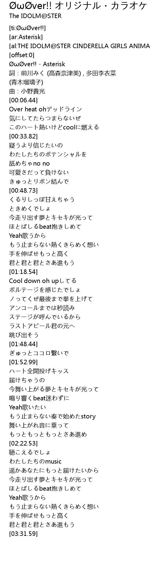 | [00:00.20] | ØωØver!! - Asterisk |