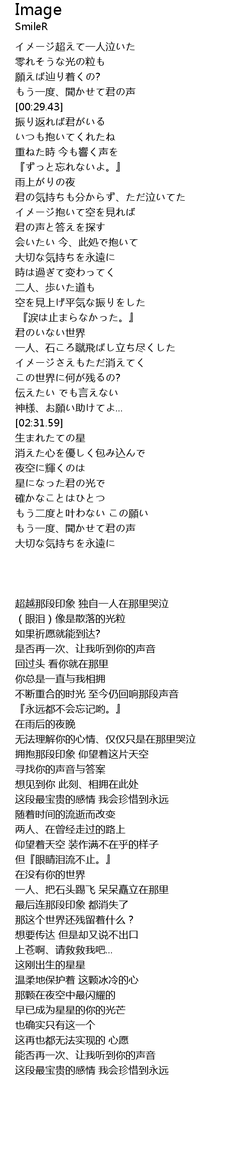 | [00:09.40] | イメージ超えて一人泣いた |