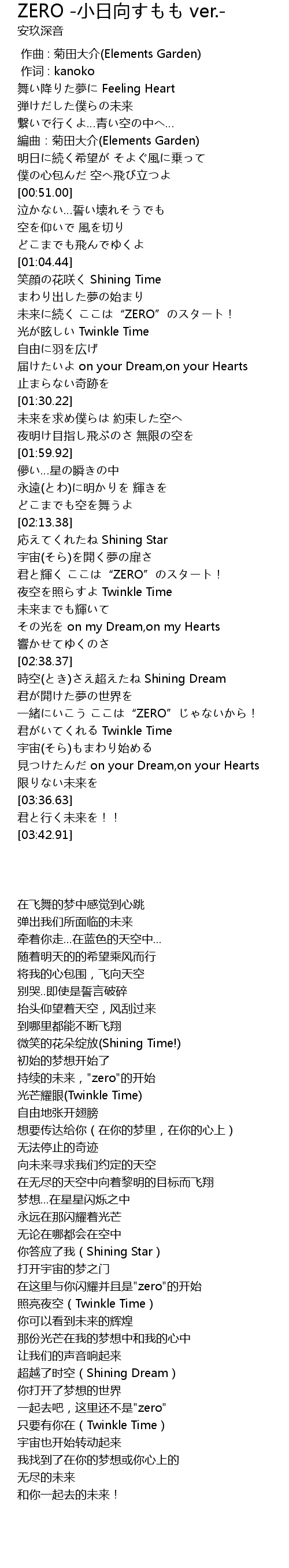 | [02:20.52] | 君と輝く ここは“ZERO”のスタート! |