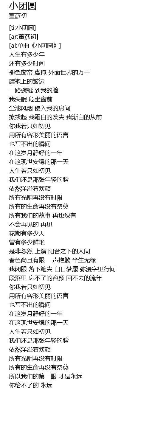 | [04:00.00] | 春色尚且有限 一声抱歉 半生无缘 |