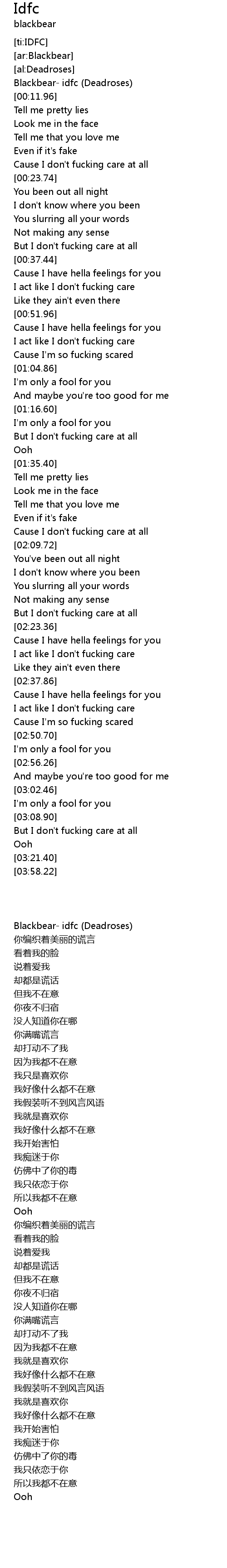 | [00:00.00] | Blackbear- idfc (Deadroses) |