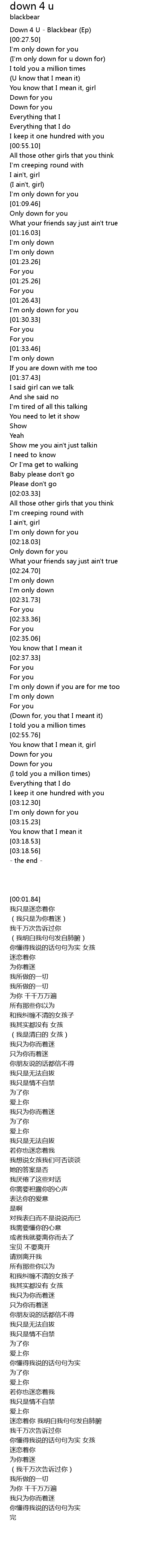 | [00:01.84] | Down 4 U - Blackbear (Ep) |