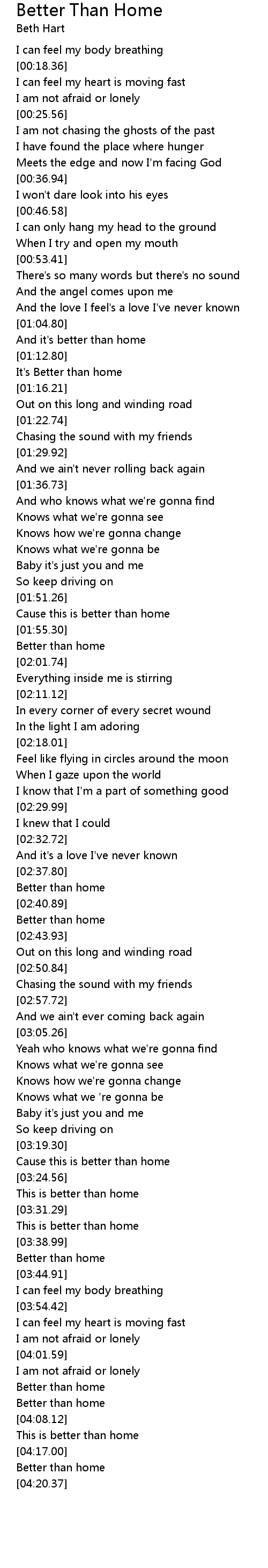 Better Than Home Lyrics