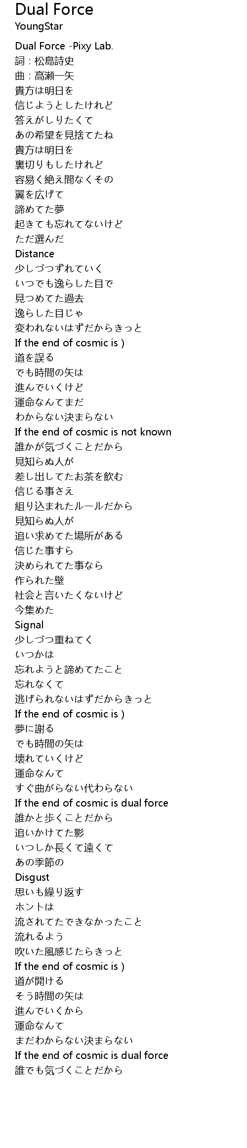 | [03:24.727] | If the end of cosmic is dual force |