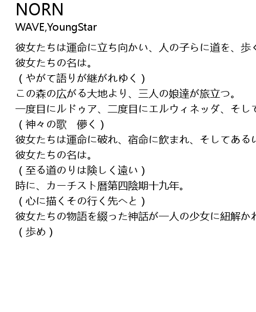 | [00:28.22] | この森の広がる大地より、三人の娘達が旅立つ。 |