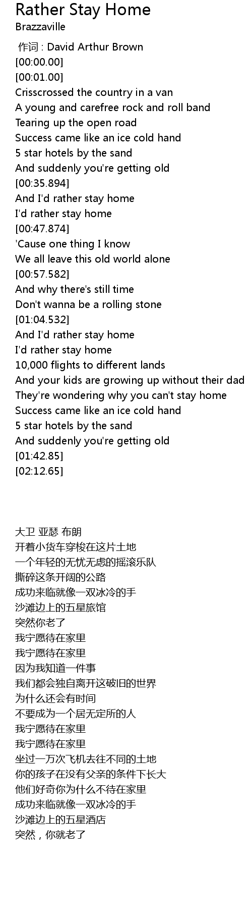 | [00:44.55] | I'd rather stay home |