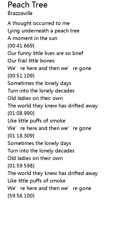 | [00:36.499] | Lying underneath a peach tree |