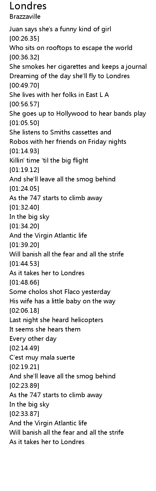 Dreaming of the day she'll fly to Londres |