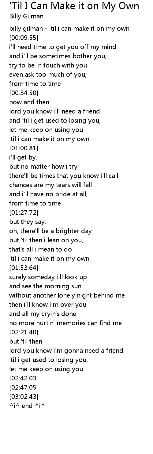[00:00.00] billy gilman - 'til i can make it on my own