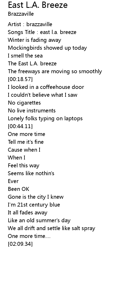 | [00:00.75] | Songs Title: east l. a. breeze |