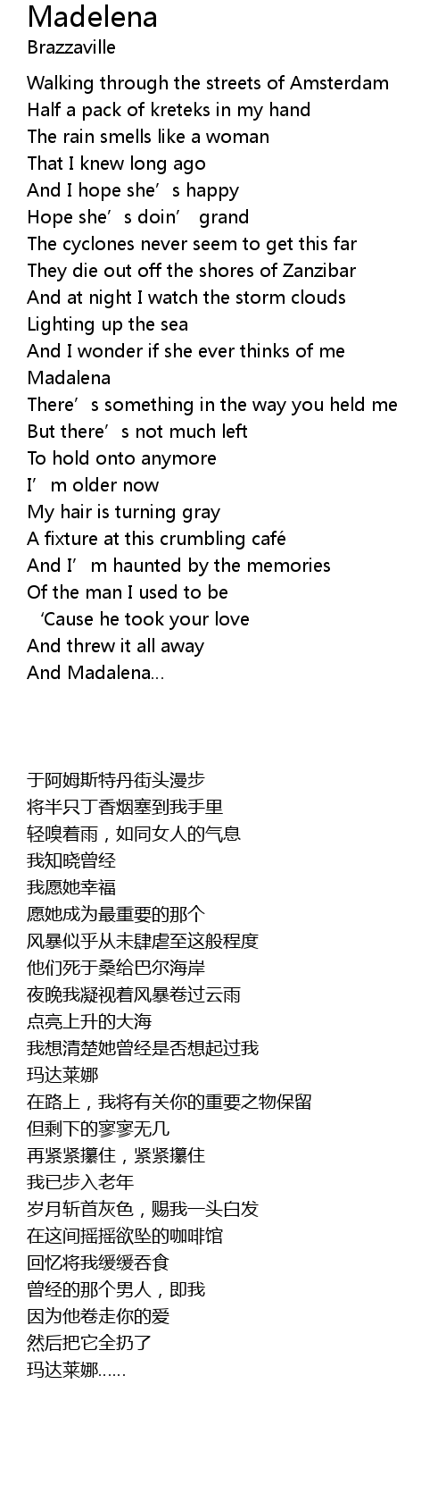 | [00:31.54] | Half a pack of kreteks in my hand |