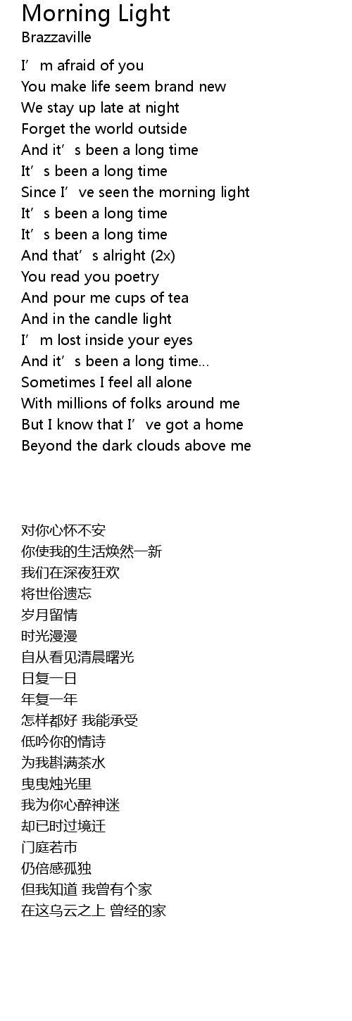 | [00:54.98] | Since I’ve seen the morning light |