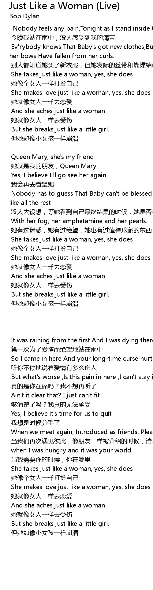 | She takes just like a woman, yes, she does | |