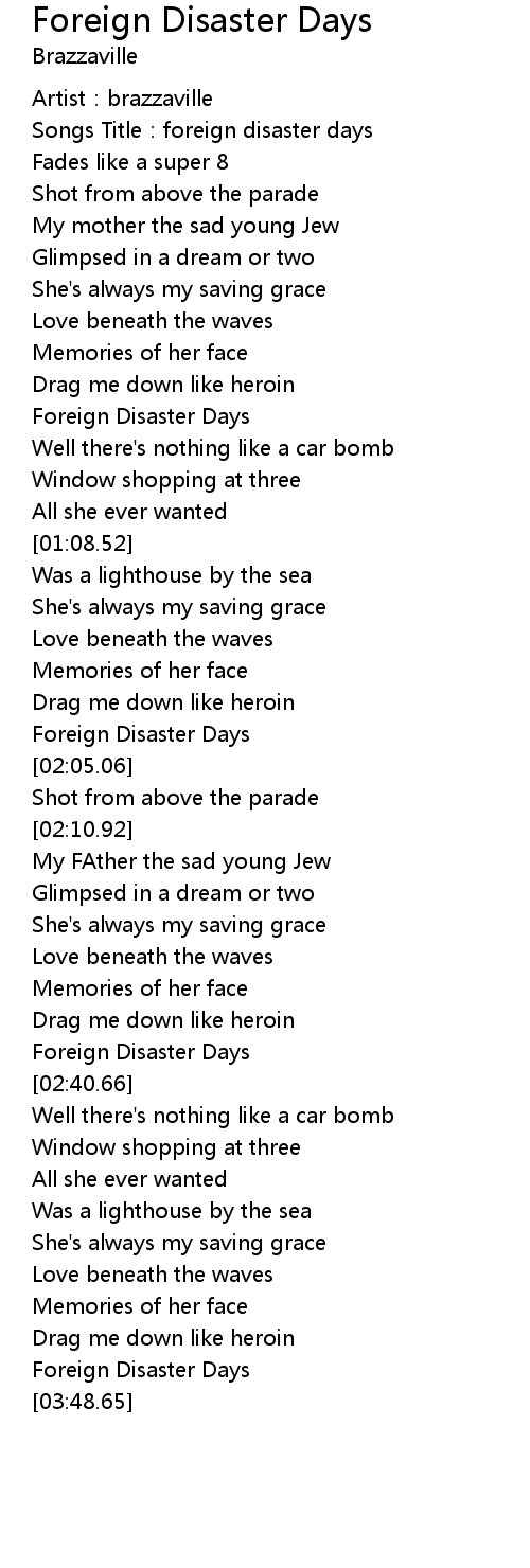 | [00:53.17] | Well there' s nothing like a car bomb |
