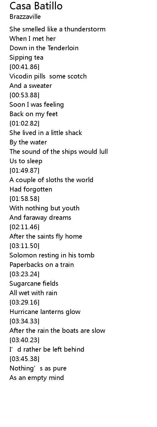 | [00:22.25] | She smelled like a thunderstorm |